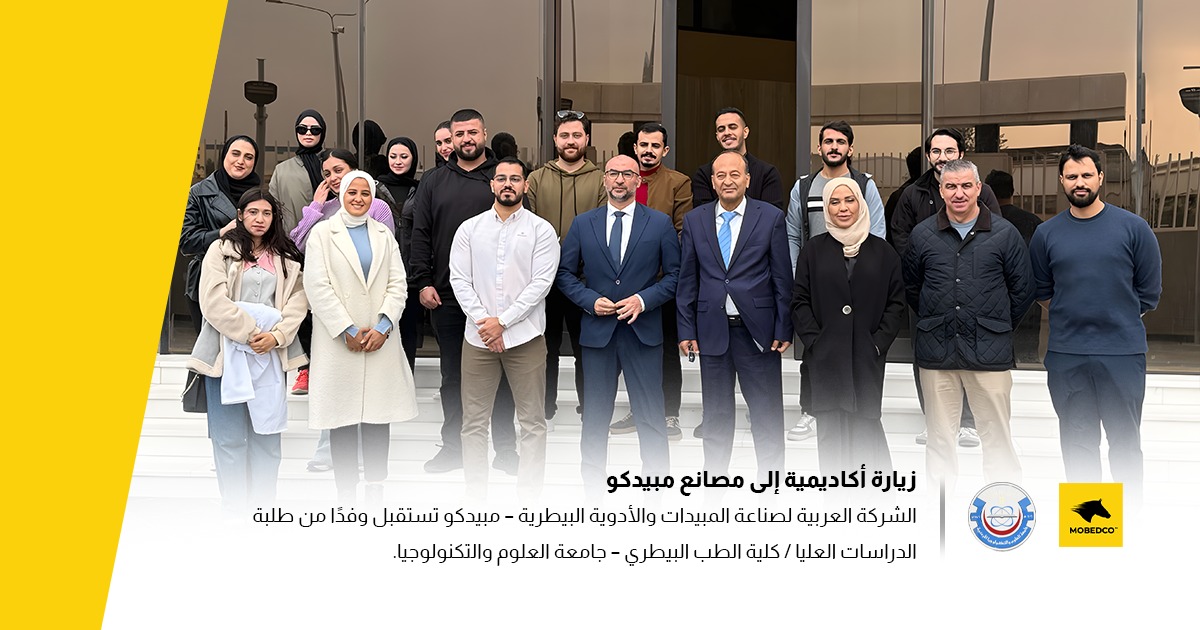 استقبلت الشركة العربية لصناعة المبيدات والأدوية البيطرية – مبيدكو ، وفدًا من كلية الطب البيطري في جامعة العلوم والتكنولوجيا الأردنية، ضم عددًا من أعضاء الهيئة التدريسية وطلبة برنامج الماجستير (الدراسات العليا)، وذلك ضمن مساق: “السلامة البيولوجية والأمن البيولوجي”.